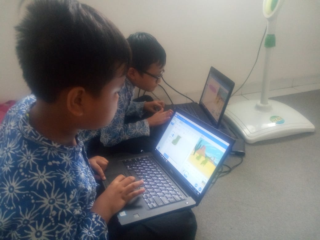 Di kelas ini kami menggunakan Scratch, sebuah software pembelajaran Coding yang dibuat oleh MIT untuk mempermudah anak belajar Coding sejak usia SD. Mempelajari logika pemrograman, membuat sebuah rangkaian program menjadi lebih sederhana, menemukan Bug dan memperbaikinya adalah menu utama. Semua itu dikemas dengan cara yang FUN dengan pembuatan Game dan Animasi sebagai medianya.